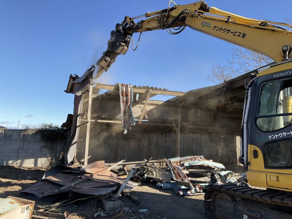 一般木造2階建て解体動画 2022.07.02 解体工事事例 ▼外壁材と木材の分別作業の様子 ▼砂埃が上がらないように水撒き ▼最後の壁を倒すところ ▼床剥ぎ作業 ▼基礎上げ作業 ▼木材・廃プラ分別作業 ▼整地作業